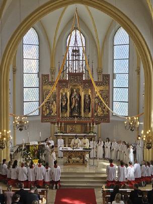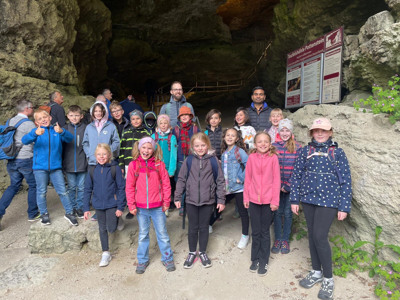 Nach dem Dankgottesdienst unternahm die Gruppe der Kommunionkinder und Eltern sowie Großeltern einen Ausflug unter der Leitung von Gemeindereferent Johannes Tauer in die Fränkische Schweiz: Nach einem Zwischenstopp in der Asamkirche St. Johannes in Michelfeld – Auerbach und einer Kirchenführung für die Kinder ging es nach dem Mittagessen im Gasthaus Schindler weiter zu einer Führung in der Tropfsteinhöhle „Teufelshöhle“ in Pottenstein. Bevor es mit dem Bus wieder nach Hause ging, durften sich die Kinder noch auf der Sommerrodelbahn austoben und ein paar schnelle Runden drehen.