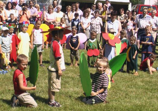 Strahlender Sonnenschein und hochsommerliche Temperaturen bringen Pfarrei in Feierlaune. Den Auftakt machte der Kindergarte, der zu Marschmusik auf der Festwiese einzog. Die Kinder spielten, tanzten und besangen das Wachsen und Reifen der Natur. In wunderbaren Kostümen begeisterten sie ihr Publikum. Pfarrgemeinderatsvorsitzender Dr. Stefan Morgenschweis begrüßte alle Gäste und dankte dem Kindergarten für den gelungenen Auftakt. Er begrüßte besonders die beiden Geistlichen, Pfarrer Winfried Larisch und Bischöflich Geistlichen Rat Lorenz Hägler. Schon im Voraus bedankte er sich bei allen, die Mitgeholfen haben und zum Gelingen des Pfarrfestes beitragen. Nachdem das Fest eröffnet war, begann auch schon das bunte Programm auf der Kettelerhauswiese, dass die Jugendverbände und Gruppen vorbereitet haben.