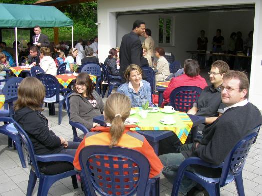 Am 6. Mai 2007 fand das erste Mal ein Pfarrcafé im Hof des Pfarrhauses statt. Nach den Überlegungen und der Planung im Pfarrgemeinderat wurde die Idee "Pfarrcafé" umgesetzt. Eine besonders festliche Tafel erwartete die Erstkommunionkinder, die vorher ihren Dankgottesdienst gefeiert haben. Viele Gottesdienstbesucher folgten der Einladung ins Pfarrcafé und freuten sich an der guten Atmosphäre. Kuchen, Kaffee und Getränke, sowie die Anschaffung des Geschirrs und die Bewirtung hat der Frauenbund übernommen. Speisen und Getränke waren für die Besucher frei, dafür konnten sie für ein Behindertenprojekt in Indien spenden.