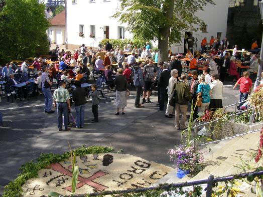 Am festlich geschmückten Kirchplatz versammelte sich die Herz Jesu Gemeinde zum gemeinsamen Mittagessen.