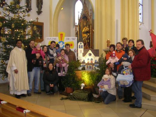 Zum Fest der Taufe des Herrn am Sonntag, 10. Januar 2009, segnete Pfarrer Saju Thomas alle Täuflinge des Jahres 2008. So erinnerte er in diesem besonderen Gottesdienst an das Ereignis, wie die 34 Täuflinge durch die Taufe Kind Gottes wurden und somit zur Gemeinschaft der Kirche gehören. Die Eltern traten mit ihren Kinder vor den Altar und wurden gesegnet. Zur Erinnerung an dieses Taufgedächtnis überreichte die Pfarrei eine Gebetskerze, die an der Osterkerze entzündet wurde. Gestaltet wurden der Gottesdienst von Cornelia Bohmann und Melanie Färber, sie haben das Thema Taufe anschaulich eingebracht, sowie Eltern und Kinder aktiv am Gottesdienst beteiligt. Während des Gottesdienstes segnete Pfarrer Saju Thomas auch das Modell der Herz Jesu Kirche, in dem die Täuflinge die Fenster zieren und somit ein Zeichen dafür sind, dass die Neugetauften zur Herz Jesu Gemeinde gehören. Er bedankte sich besonders bei den Erbauern dieser wunderschönen Miniaturkirche: Hans Pilhofer und Wolfgang Albersdörfer.