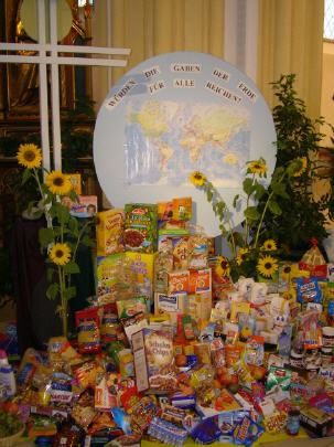 Die Kinder vom Kneipp-Kindergarten zeigten mit einem Lied ihre Dankbarkeit für die Erntegaben, dazu hatten sie lustige Kartoffelkönige gebastelt. Am Ende des Gottesdienstes bedankte sich Pfarrer Saju Thomas bei allen, die sich um die Vorbereitung und Durchführung des Erntedankfestes gekümmert haben. Mit Eintopf , Weißwürsten und Köstlichkeiten aus dem fairen Handel klang das Erntedankfest nach dem Gottesdienst am Pfarrhof in gemütlicher Runde aus.