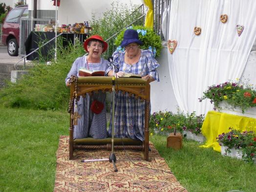 Zwei "fromme Damen" ratschen laut und brachten die Gemeinde zum Lachen.