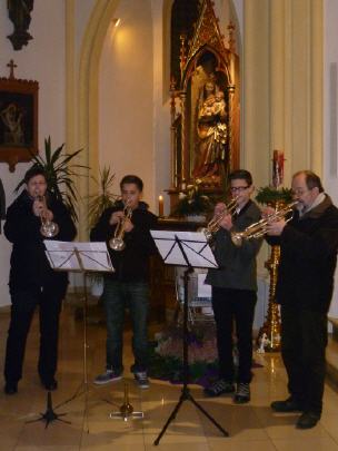 Zahlreiche Gäste und viele Mitwirkende konnte Pfarrer Saju am ersten Adventsonntag 2012 in der Herz Jesu Kirche begrüßen. Er lud dazu ein, sich mit besinnlicher Musik und ansprechenden Texten innerlich auf die Adventszeit einstimmen zu lassen. Damit der Advent wirklich im Wortsinn die Zeit der Ankunft des Messias sein kann. Den Auftakt bildeten Kirchenchor und Spontanchor der Pfarrei unter der Leitung von Susanna Müssig-Wilczek. Adventliche Weisen spielte das Trompetenquartett Maria Boßle, Michael Zollinger, Martin Morgenschweis und Sebastian Brandl. Einzelne Musikblöcke gestalteten der Kirchenchor und der Spontanchor. Besinnliche Texte zur Adventszeit, vorgetragen von Lektoren aus der Pfarrei, rundeten das musikalische Programm ab. Am Ende stimmte die versammelte Gemeinde zusammen mit allen Mitwirkenden den Engel des Herrn an. Abschließend dankte Pfarrer Saju allen Mitwirkenden für ihre großartige Leistung und verabschiedete alle Zuhörer mit dem Segen Gottes.