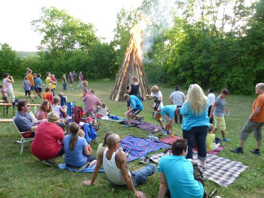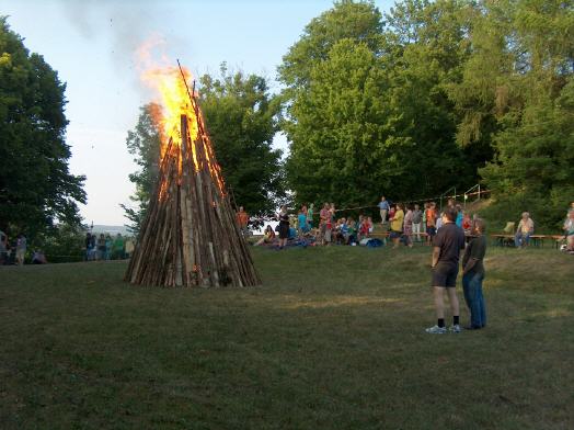 Mit einer ökumenischen Segnung begann der angenehme Sommerabend des 29.06.2012 auf dem Schlossberg. Gläubige aus den beiden Rosenberger Gemeinden, der evangelischen Johannisgemeinde und der katholischen Herz Jesu Pfarrei haben sich auf dem Schlossberg in Rosenberg eingefunden, darunter viele Familien mit Kindern und vor allem viele Jugendliche. Pfarrer Saju Thomas begrüßten die zahlreichen Besucher und eröffnete die kurze liturgische Feie, die von der "sail away"-Gruppe der Gefirmten mit Regligionslehrer Michael Koller vorbereitet wurde. Die Jugendlichen zeigten in einer Einstimmung die verschiedenen Kräfte des Feuers auf und verlasen dazu Psalm 66. Pfarrer Dr. Roland Gierth verkündete die Frohe Botschaft von Johannes dem Täufer, der auf den kommenden Retter Jesus Christus verwies. Nach Fürbitten und Vater Unser segneten die beiden Geistlichen das Feuer. Für die musikalische Gestaltung der Segensfeier sorgte die Miniband unter der Leitung von Christine Lösl. Am Ende der Andacht bedankte sich Pfarrer Saju Thomas bei allen, die zum großartigen Gelingen des Johannisfeuers beigetragen haben. Der Stadt mit Bürgermeister Michael Göth für die Genehmigung und die Unterstützung von Bauhof und Stadtgärtnerei. Für die Gesamtorganisation Erwin Thurner und den Pfarrgemeinderäten Andreas König, Wolfgang Albersdörfer, Christine Heller und Sonja Plachetka, den Pfadfindern für die Bereitung des Holzes, den Jugendgruppen Tawa Pano und Ministranten für die Verpflegung der Besucher und der Familie Meier für die Unterstützung und Durchfahrtsgenehmigung. Vertreter aller Gruppen, sowie die Organisatoren entzündeten schließlich gemeinsam das Feuer, dass weit über die Stadt sichtbar war. Viele zeigten sich erfreut über die Wiederbelebung des Johannisfeuers in Rosenberg auf dem Schlossberg, der eine eindrucksvoller Ort dafür ist und wünschten sich eine Wiederholung im nächsten Jahr. In gemütlicher Atmosphäre verweilten viele Gäste bis spät in die Nacht am Feuer.