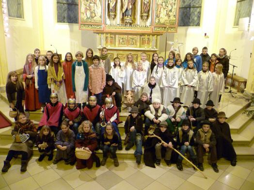 Die Kinderkrippenfeier 2012 fand, wie jedes Jahr, wieder am Hl. Abend um 16.30 Uhr statt. In der bis auf den letzten (Steh-) Platz gefüllten Kirche freute sich die Gemeinde auf Ankunft Christi. Eine Vielzahl von Kindern beteiligte sich am Krippenspiel.