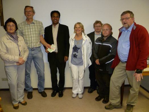 Ein Arbeitskreis der Pfarrei beteiligte sich am Auftakt zum Katholikentag in Regensburg am "Abend der Begegnung" mit einem Verpflegungsstand. So wurde in Zusammenarbeit mit Reinhard Kohl Spanferkelbraten mit Knödeln am Neupfarrplatz angeboten. Den Erlös hat jetzt der Arbeitskreis "Katholikentag" an Pfarrer Saju Thomas übergeben. Der Betrag von 650 Euro geht an ein Projekt in Nordindien. In Kuwakheda wird ein Projekt im Sinne von Hilfe zur Selbsthilfe unterstützt. Die Häuser der ärmeren Bevölkerung verfügen über keine sanitären Anlagen. Deshalb bekommen die Bewohner das Baumaterial jetzt gestellt und leisten die Bauarbeiten selber. So kann sich die hygienische Situation im Ort erheblich verbessern.