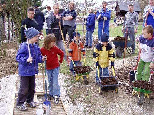 Während einer Gartenaktion in der letzten Märzwoche halfen die Väter und Kinder tatkräftig mit, um möglichst bald die Kinderfüße verwöhnen zu können.