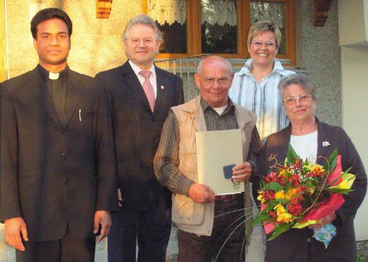 Auch Pfarrvikar Pater Thomas Saju bedankte sich für das ehrenamtliche Engagement, denn er wisse wohl, wie schwierig es ist, jemanden zu finden der unentgeltliche Arbeit leistet. Für dieses Ehrenamt überreicht der Kirchenpfleger Albert Wismeth ein Geschenk im Namen der Pfarrei Herz Jesu.
