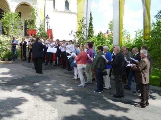 So formierte sich im Anschluss an die feierliche Eucharistiefeier die Fronleichnamsprozession durch die Straßen von Rosenberg. Daran beteiligte sich eine große Zahl an Gläubigen, sowie viele Gruppen und Verbände, die Pfadfinder der DPSG und GSG, der Frauenbund, die KAB und die KAB-Senioren, die Kolpingfamilie und der Schützenverein Obersdorf.
