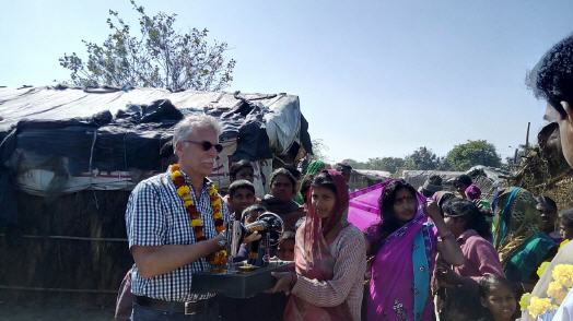 Wir haben für die armen Kinder Schulmaterialien, Kleidung, Fahrrad, einen kleinen Imbiss und Entgelt für die Lehrkräfte gegeben, unterstützt durch Ihre großzügige Hilfe. Weiter haben wir auch ihren Eltern teilweise materielle Hilfe angeboten. Wir haben durch Ihre Hilfe Folgendes noch geleistet: Zwölf Mütter haben Nähmaschinen bekommen, damit sie nicht nur Reparaturen ihrer eigenen Kleider machen können, sondern sie können etwas Geld durch ihre Näharbeit verdienen. Mein Mitbruder aus Fronberg bei Schwandorf, Pfarrer Thomas, war mit zwei Deutschen aus seiner Gemeinde dort. Sie überreichten diese Nähmaschinen an die Frauen, wie Sie auch aus den Bildern ersehen können. Zwei Väter bekamen vierrädrige Fahrrad-Rikschas, damit sie im Markt Gemüse oder einen kleinen Imbiss verkaufen können. Weil diese Menschen unter den gespannten Plastikfolien ohne Betten schlafen müssen, haben wir für 25 Familien faltbare Betten angeschafft, damit die Kinder nicht auf dem Boden schlafen müssen. 85 Familien erhielten Wolldecken für den Winter.