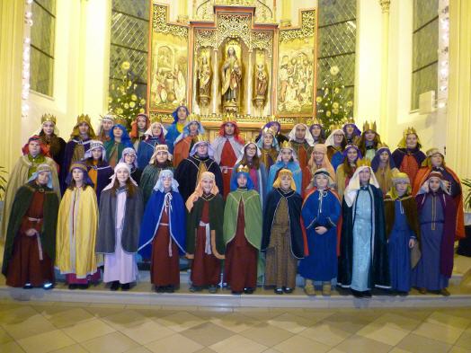 Im Neujahrsgottesdienst wurden über 40 Kinder und Jugendliche aus den Reihen der Ministranten und Firmlinge als Sternsinger ausgesandt. In orientalischen Gewändern als "Heilige Könige" bringen sie den Weihnachtssegen zu den Menschen in Rosenberg. Von Montag 02. bis Mittwoch 04. Januar 2017 sind sie im gesamten Ortsbereich von Rosenberg unterwegs und besuchen alle Häuser. Die Sternsinger gestalteten den Gottesdienst mit Texten und Gebeten und stellten das Motto der Aktion "Gemeinsam für Gottes Schöpfung in Kenia und Weltweit" vor. So wurde mit einem Anspiel besonders auf die Folgen des Klimawandels hingewiesen, unter denen viele Menschen bereits extrem leiden. In den Fürbitten und einer großen Gabenprozession wurden die Anliegen um den Erhalt der Schöpfung ins Gebet genommen und vor Gott getragen. Pfarrer Saju Thomas segnete am Ende des Gottesdienstes den Weihrauch und die Kreide der Sternsinger und sandte sie mit dem Segen Gottes aus. Für ihren Weg durch Rosenberg wünschte er ihnen viel Erfolg. An alle Bewohner erging seine Bitte um freundliche Aufnahme und ein herzlicher Dank für die hoffentlich zahlreichen Spenden.