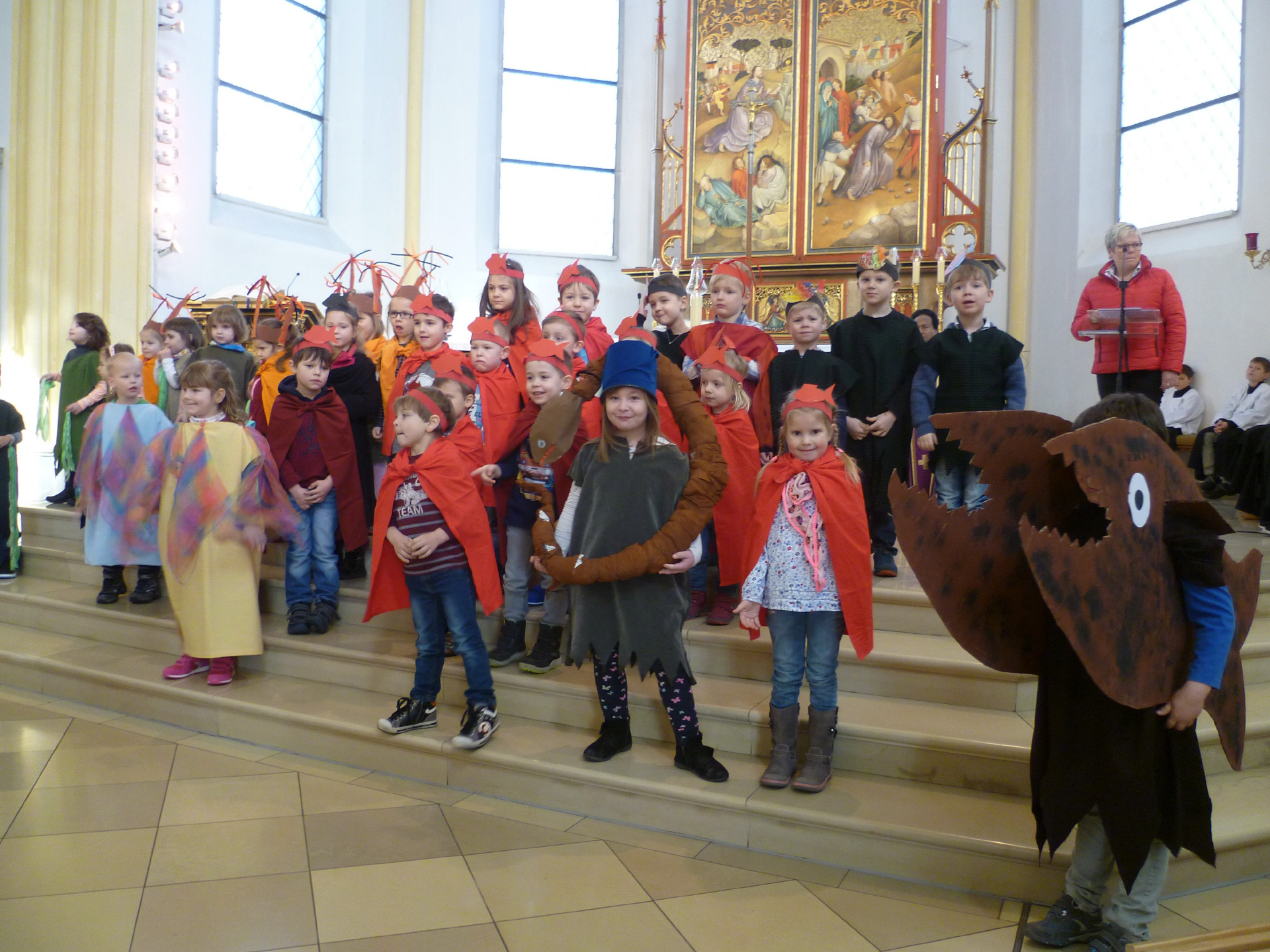 Die Kinder vom Kneipp Kindergarten der Pfarrei Herz Jesu Rosenberg zeigten im Familiengottesdienst eine Woche vor Palmsonntag wie Gemeinschaft stark macht. Dazu spielten sie mit tollen Kostümen in der Kirche die Geschichte von Swimmy, dem kleinen schwarzen Fisch, der abenteuerlustig die Unterwasserwelt erkunden möchte aber alleine zu schwach ist. Mit einem Trick bildet er zusammen mit einem roten Schwarm Fische einen großen Fisch, er selbst als Auge. So lassen sich sicher große Abenteuer bestehen. Die Erfahrung von Swimmy deutete Pfarrer Saju für die Kinder. So bilden alle Christen zusammen eine starke Gemeinschaft. Wer mit Jesus Christus durch das Leben geht, braucht sich nicht zu fürchten und kann viel erleben. Für die musikalische Gestaltung sorgte Regina Brandhuber am Piano. Am Ende der Eucharistiefeier dankte Pfarrer Saju den Kindern und dem Personal des Kindergartens für die tolle Gestaltung.
