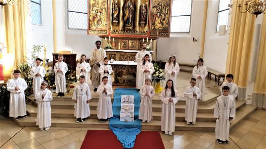 Die Vorbereitung auf das Fest der Heiligen Kommunion lief dieses Jahr anders als gewohnt ab. Da keine Elternabende und Tischgruppen stattfinden konnten, erstellte Gemeindeassistent Johannes Tauer ein Begleitheft für die Familien. Ergänzt wurde die Vorbereitung durch monatliche Videokonferenzen mit den Erstkommunionkindern, Materialien für Zuhause, gemeinsame Feier der Sonntagsgottesdienste und Schülermessen sowie durch den Distanzunterricht im Fach Religion.