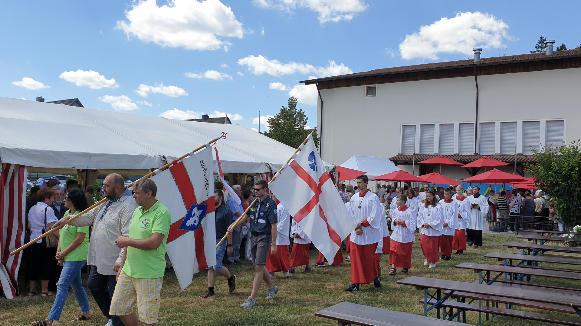 Die Kinder des Kneippkindergartens bereicherten die Anwesenden mit einer Einlage. Musikalisch wurden die Gäste von der Gebenbacher Blaskapelle unterhalten. Leider hatte es der Sommer fast zu gut gemeint, so dass manche Besucher ob der großen Hitze bald wieder den Heimweg antraten. Bleibt noch zu erwähnen, dass wieder viele Pfarreimitglieder ehrenamtlich und unentgeltlich zum Gelingen des hervorragend organisierten Festes beigetragen hatten.