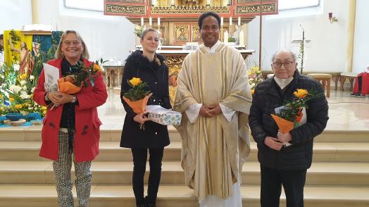 Im März dieses Jahres fanden in den bayerischen Diözesen die Pfarrgemeinderatswahlen statt. Auch in der Pfarrei Herz-Jesu Rosenberg formierte sich das Gremium neu. Im Gottesdienst am weißen Sonntag wurde die neue Zusammensetzung des Gremiums offiziell in das Amt eingeführt, wobei nur zwei Gesichter neu im Kreise der Ehrenamtlichen vertreten sind. Jessica Kellner und Dr. Sabine Morgenschweis hatten sich nicht zur Wiederwahl gestellt. Sie wurden nun im Rahmen einer kleinen Feier verabschiedet. Bei dieser Gelegenheit konnte auch Lothar Meier für 40 Jahre ehrenamtlichen Dienst als Kommunionhelfer, davon 35 Jahre als Koordinator aller Kommunionhelfer, gedankt werden. Er gibt dieses Amt nun aus Altersgründen auf. Jahrelang zeichnete er auch für Erstellung der Kirchenrechnung verantwortlich.