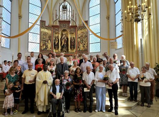 Einmal jährlich lädt die Rosenberger Pfarrei Herz Jesu ihre Gemeindemitglieder, die im jeweiligen Jahr ein rundes Ehejubiläum feiern, zu einem Dankgottesdienst ein. 19 Paare waren der Einladung gefolgt und versammelten sich zu einem feierlichen Gottesdienst am letzten Juni-Sonntag in der Pfarrkirche.