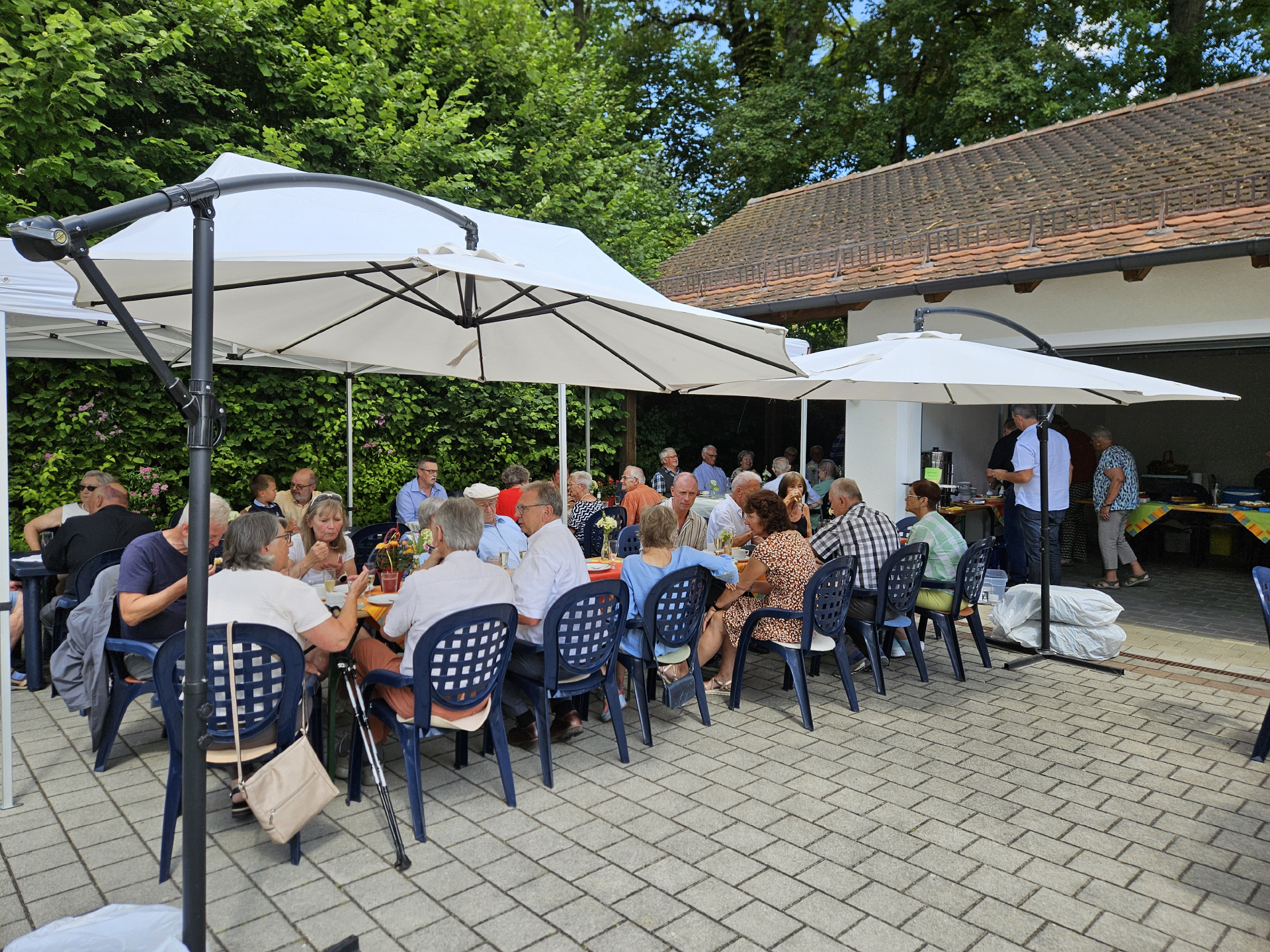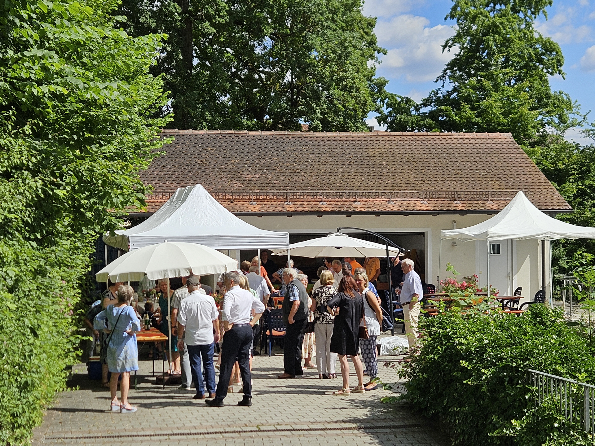 Neben einer Urkunde erhielten die Jubilare noch ein kleines Blumenpräsent. Im Anschluss daran begab sich die Gesellschaft in den Hof des Pfarrhofes, wo die Kolpingfamilie Herz Jesu Rosenberg für schattige Plätze sowie die Bewirtung mit Kaffee- und Kuchenbuffet sorgte.