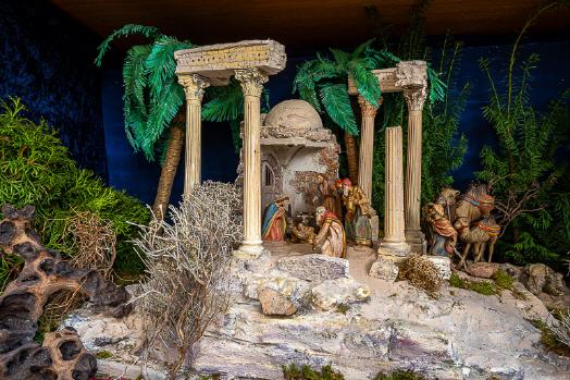 Die Jahreskrippe wird von Wolfgang Albersdörfer gestaltet. Die Szenen wechseln regelmäßig und sind detailreich ausgestattet.