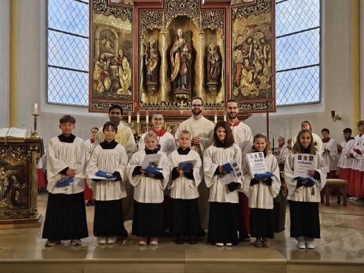 Jedes Jahr im Oktober versammeln sich die Ministranten der Rosenberger Pfarrei Herz Jesu zur feierlichen Aufnahme neuer Ministranten. So durften auch in diesem Jahr am 19. 10. 2025 im Rahmen eines Sonntagsgottesdienstes wieder sieben junge „Minis“ in den Kreis der Gemeinschaft aufgenommen werden. Vier Ministranten verabschiedeten sich, teils nach 10-jährigem aktivem Dienst, von der Gemeinschaft, so dass die Pfarrei nun 43 aktive „Minis“ zählt.