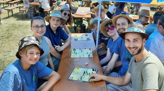 Bei hochsommerlichen Temperaturen versammelten sich am 15.07.2023 auf der Bleichwiese in Amberg über 2100 Menschen, um für 30 Minuten gemeinsam „Mensch ärgere dich nicht“ zu spielen. Auch Ministrantinnen und Ministranten sowie Vertreterinnen des Familiengottesdienstteams waren dabei.
